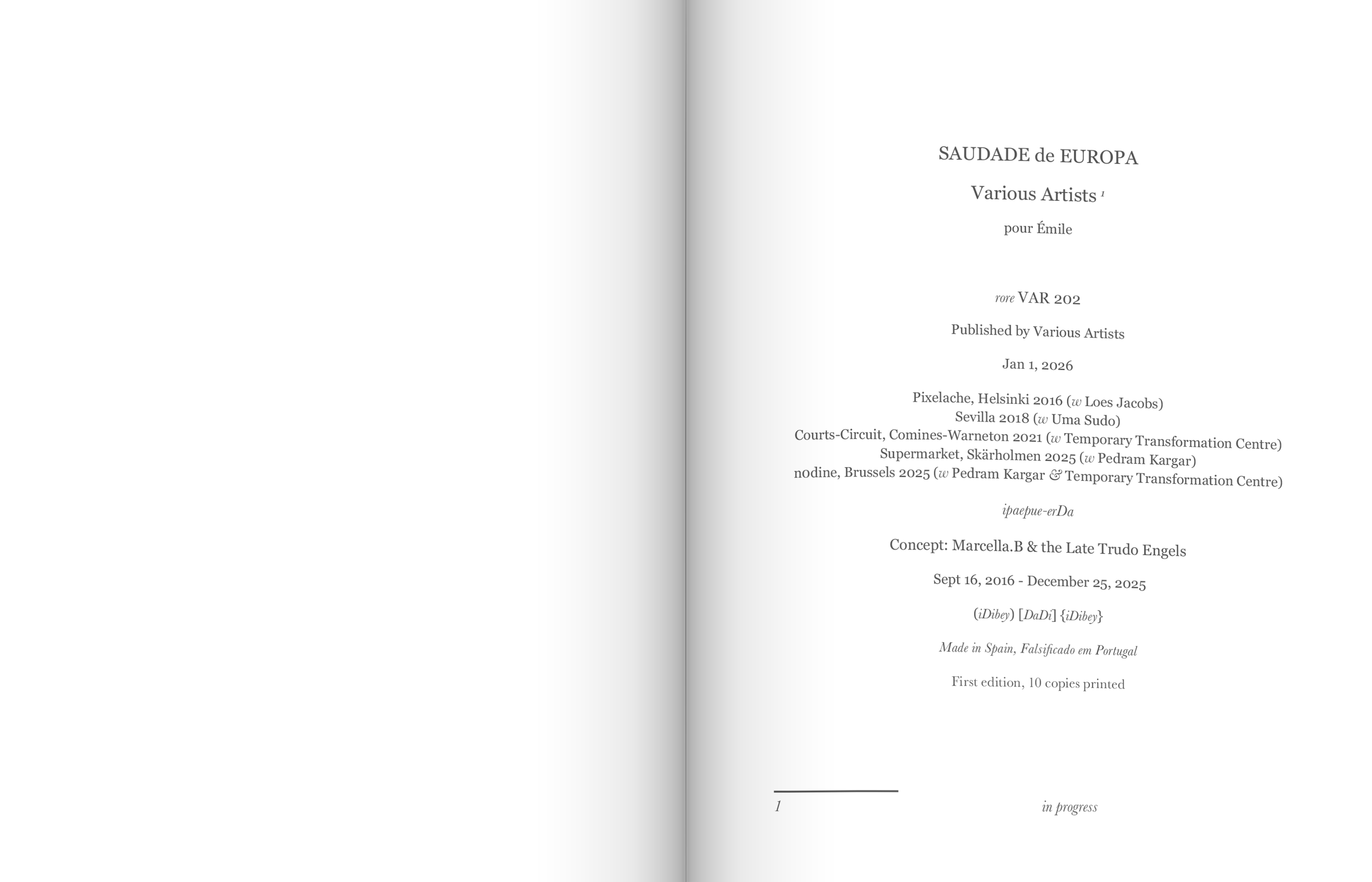 Saudade de Europa is a poetic exploration of the fifty-year economic evolution of the European continent, examining how globalization reshaped Europe into a predominantly consumer-driven economy. The project unfolds through a series of journeys, each structured as a chapter, in which movement through territory becomes a method of observation, collection, and transformation.